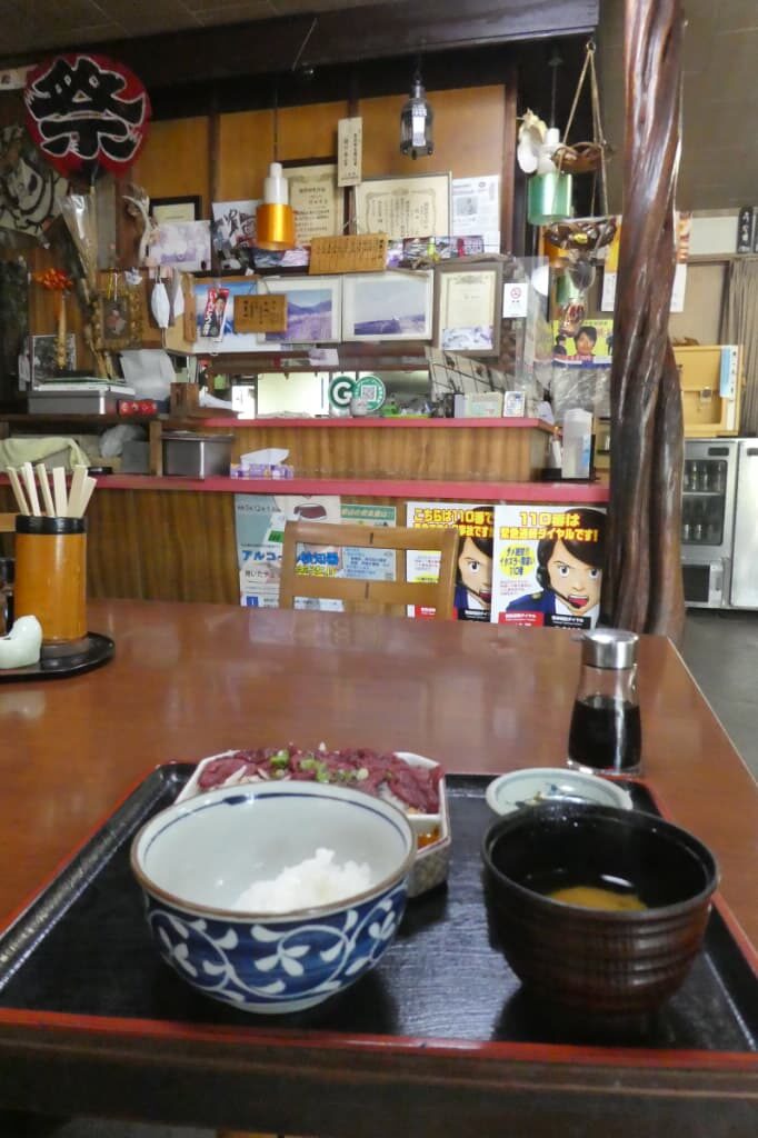 旅の前に調べ物をしていた時、どこかちょうどいいところで馬刺しを食べられるところはないかと探していたらたまたまここを見つけたわけだけど、場所のちょうど良さはもちろん、馬刺しもボリューム満点だと口コミに書いてあったのが決定打だった。一体どれほどのものなのか、楽しみにしながら座して待つ!